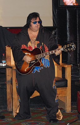 Elvis Presley is reputed to have recorded over 900 songs, this fellow - Pete Vallee - knows them all. For a more detailed description of Big Elvis click here Pete goes by the moniker of "Big Elvis". This name came about because at one time he weighed over 800lbs. He has since lost 500 of these pounds thus begging the question can he still be called "Big Elvis"? One of his more startling accomplishments is his claim to be an illegitimate son of the real Elvis click here A fascinating story.