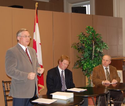 Ralph Torrie (Greens) After thanking everybody for turning out he explained that even in the last election he had fears that the economy was tanking. "We have not changed gears fast enough. Mr. Harper had been told by the electorate make Parliament work. I waited and waited - it never happened" Saying that the economic stimulus did not give Canadians what they wanted. "This situation (the parliamentary crisis) didn't happen overnight, this system is not working. We learnt this in grade five civics. Being optimistic he told the audience that this coalition is one that we should expect if we ever implement Proportional voting. "Coalitions are the norm in the world today, we have to learn to work together." Turning back to the economic crisis Mr Torrie said, "We don't have time to waste, if we don't act now we will have wasted two months."