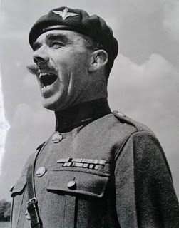 In every Army unit there is a F***up. Established in modern culture by the cartoonist who draws Beatle Bailey and perpetuated in every movie ever made about Armies. This FU is the guy who is late, never shines his boots, always fails his drill exercises, marches out of step and generally commits many small military crimes. The bane of his existance is the opposite; the Regimental Sergeant Major, the most feared man in the Unit. He is the man in charge despite what the Colonel thinks. He is the man who makes grown men quake in their boots and on his parades nobody slacks off. One of my recollections about an RSM is where a squad of apprentices, absolutely terrified of having to speak to the RSM, if he stopped in front of you when he was inspecting you and your kit, was the time he stopped in front of one fellow who after the RSM had spotted an error, "What's your name boy?" bellowed at top pitch. "Smith sir" "No it isn't you have just lost it - march him away Sergeant" The inset picture shows the most famous RSM in history - John Lord. A beautiful pic that shows him at his most fiercest - on parade. However despite the obvious bluster most RSMs always had another side of humanity and most were courteous gentlement who because they demanded the highest of standards from all they dealt with were obviously confusing human beings.