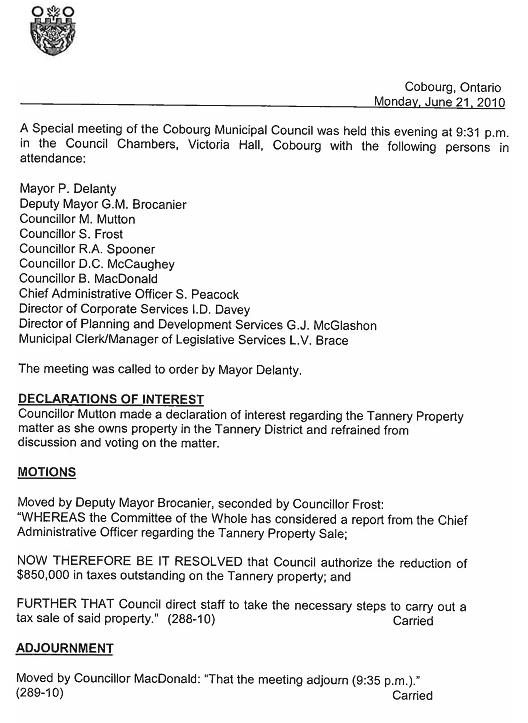 But on Monday night the first stage of the "Great Giveaway" will ocurr when the minutes of a special meeting will be adopted. A special meeting convened at 9.31 pm and adjourned at 9.35 pm on June 21st. A motion was passed to reduce the tax liability from $835,000 to an unknown amount. This is a statutory move designed to allow the CAO flexibility in his negotiations with prospective buyers. Depending on the new uses proposed by prospective buyers taxpayers of Cobourg will not know if this is a good move or not. But be aware that this could be a giveaway to a developer with an inside connection or a move for the public good. Either way Cobourg taxpayers are giving away tax money!