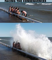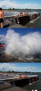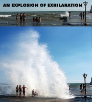 There were three boys and a girl in the frothing turbulence of the water, riding the surface currents of the waves. It was a wonderful display of mental alertness and physical strength and endurance of their prime-of-life bodies. The background ambience is Danger. Risky behaviour? Of course. How else does a human being test their abilities?