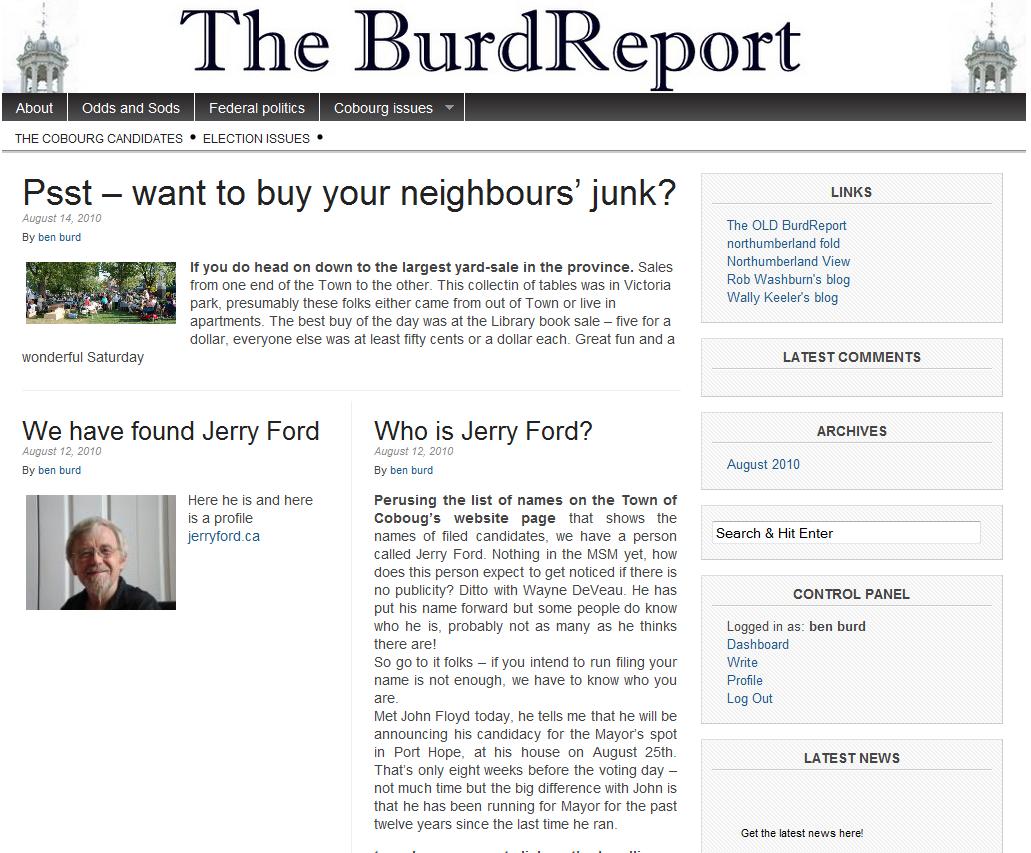 Perusing the list of names on the Town of Coboug's website page that shows the names of filed candidates, we have a person called Jerry Ford. Nothing in the MSM yet, how does this person expect to get noticed if there is no publicity? Ditto with Wayne DeVeau. He has put his name forward but some people do know who he is, probably not as many as he thinks there are!