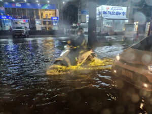 Back on the van only to be met halfway back by torrential rain, which was possibly a remnant of the typhoon, but unfortunately for some of the residents of HCMC it resulted in flooding as the high tide from the river crested at the same time so the storm drains backed up. This is a usual occurrence and the people live with it, but obviously don’t like it.
