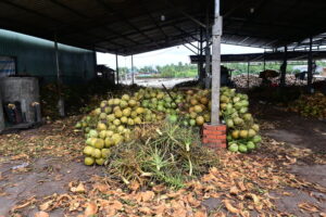 The first place was the usual ‘comfort’ stop which is always tied to a souvenir store, the second was the start of the tour – a local brickworks that uses mud from the river to mould the bricks and coconut remnants to fire the kilns. Walking through jungle paths we came to the coconut factory where they split the husks, extract the nuts, harvest the coconut meat and then use the waste as ground up fertilizer – everything used organically – impressive.