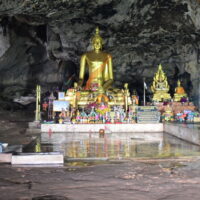Chopsticks are not the rule here even the locals use a fork and spoon sometimes. While waiting I explored and came across a huge cave – with a shrine in it.